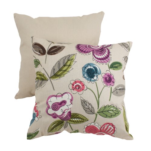 Pillow Perfect Decorative Beige/Purple Modern Floral Square Toss Pillow. Spot clean. Made in USA.