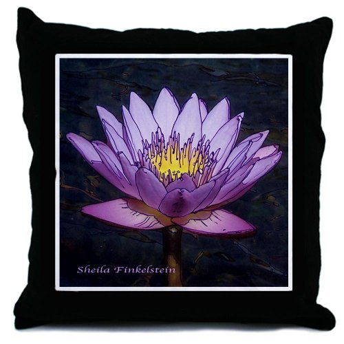 Purple tropical water lily flower nature art photo drawing imprinted on a throw pillow