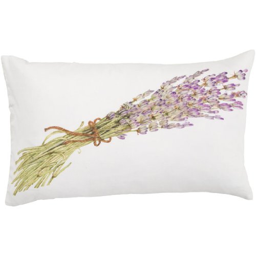 White rectangular pillow features a tall bundle of lavender