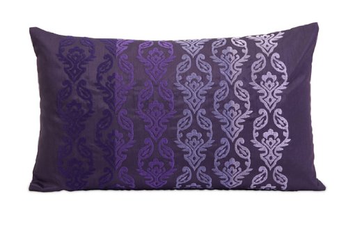 Embroidery fades from deep violet to delicate lavender along the length of the pillow