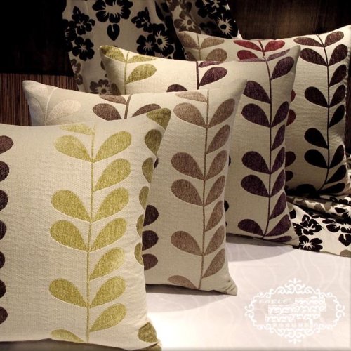 - Dark purple, green Leaves chenille. Beige cashmere on the other side. Stylish, elegant.