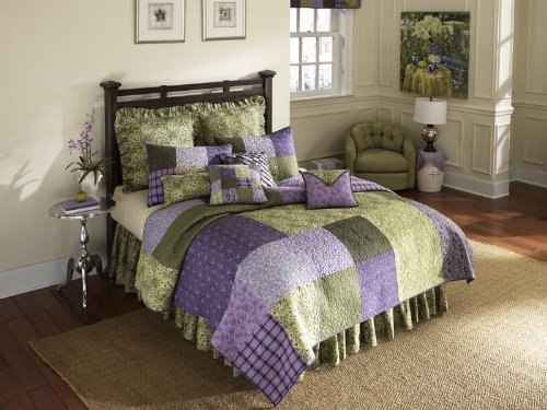 Donna Sharp has created an entire new style of patchwork. Lightweight and economical, the large square design is both new and exciting. Twelve different sizes of squares and rectangles are perfectly placed at varying angles, allowing the color to make a maximum impact on the room while interesting piecing makes a fun, but bold statement. Finding two dominate colors and then mixing fabrics in those varying shades sounds like a simple enough concept. The challenge is finding just the right textures that can work together rather than fight each other, then, maneuvering these-piece into the ideal organized appearance for your decorating convenience. The Vineyard Square is a perfect mix of lavendar, plum, pine green, light green, and periwinkle fabrics. Donna Sharp quilts are cherished for their quality and matchless designs. This quilted Vineyard Square decorative pillow measuring 15 by 15-Inch is made with 100-percent cotton. This product is recommended for machine wash cold, gentle cycle. Tumble dry or line dry. Do not bleach. Use large capacity washer and dryer to ensure free movement. During drying cycle reposition several times to prevent scorching. All Donna Sharp quilts are featured with Donna's signature and are reversible