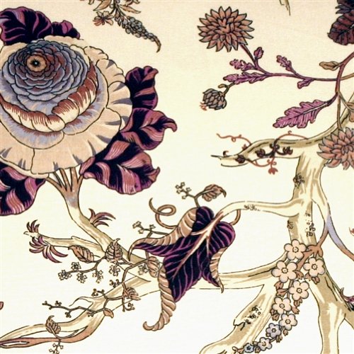 Blooming highland flowers burst with life on this enchanting floral design throw pillow. The cream cotton background wonderfully shows off the contrasting flowers and branches in soft purple, mauve, browns and olive greens. The pillow is edged with warm sand colored piping. Lively and feminine this is a gorgeous, versatile pillow.