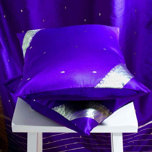 Purple Silk Sari Pillow Covers Sham with Centerr Gold trim